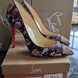 NIB. Put Sole Protection as I do with all my CLs. Never wore them out of the house. Clearing out my closet. Hope somebody can put them to good use. They are 37.5. If you are a 6.5 or 7 US size these will fit you just fine. These shoes are works of art. Offers will be heard only through the app. Box and bag included.
