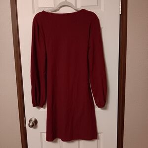 PRETTYGARDEN Women's Burgundy Long Lantern Sleeve Dress Crewneck Tie Waist Dress