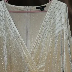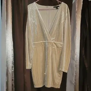 This stunning cream bodycon dress from Forever 21 is perfect for a cocktail night out. It features a daring plunge neckline and long fitted sleeves, offering a chic and sophisticated look. The dress is designed to hug your curves, accentuating your silhouette with its form-fitting style.