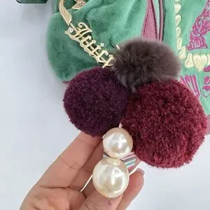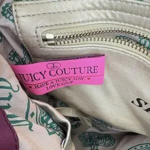 Vintage Juicy Couture Daydreamer Tote Bag Purse Royal Dog Bow Pompom Pin Charm