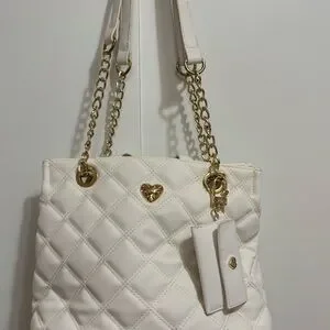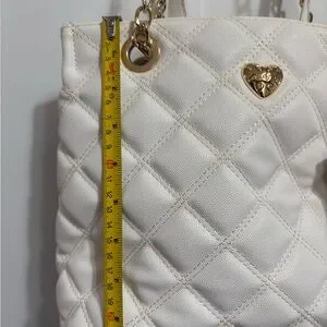 Betsey Johnson Quilted White Faux Leather Shoulder Satchel Tote