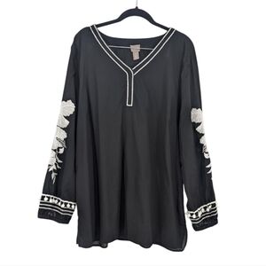 Chicos Romantic Contrast Embroidered Tunic Top Black And White Size Large / 3