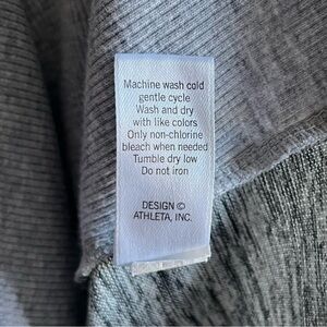 This is a hooded Batwing & Robin pullover sweatshirt from Athleta, ladies size Medium. The soft fabric, 96% polyester/4% spandex, is heathered gray. Features a twist V-neckline, front pockets, and thumb holes. A comfortable, lightweight item that’s perfect for athletic activities, yoga, or those casual days when comfort is a must!