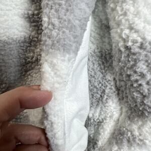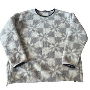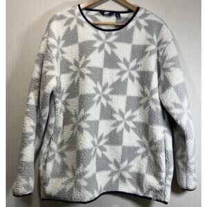 Lands’ End Women LARGE White Gray Sherpa Fleece Pullover Sweater Sweatshirt