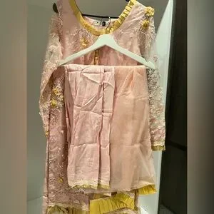 Pink and Yellow Embroidered Pakistani/Indian Dress Set