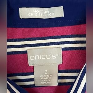 Chico’s No- Iron Pink Striped Button-Up Shirt size L