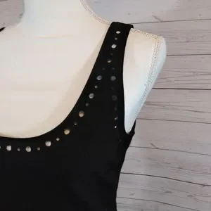 Punched laser cut out pattern around hem and neckline