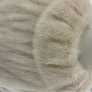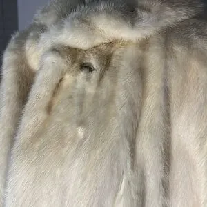Luxurious cream fur coat with a soft texture. Perfect for adding elegance to any outfit.