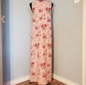 Pink floral maxi sundress by Mountain Lake. 55% linen 45% rayon. It has three buttons on the side for easier on and off. It features split sides. The pit to pit measurement is about 17" and the length is about 52". Size small. Made in India. Good pre owned condition.