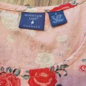 Embrace vintage charm with this sweet and breezy Mountain Lake Casuals sleeveless maxi dress. Featuring a delicate pink background adorned with an all-over rose floral print in soft red, cream, and green tones, this lightweight dress is perfect for warm days or easy layering.
