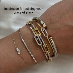 18k gold plated. Stainless steel two-toned cuff bracelet with both gold and silver. Euro style jewelry. Bangle bracelet great for layering mixed metal. Gold tips.