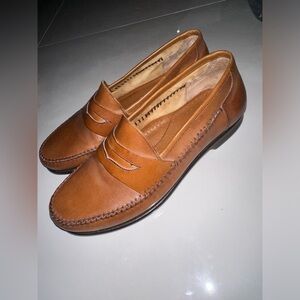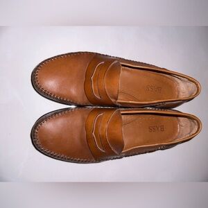 Bass Shoe Mens 8.5m Tan Brown Reiss British Leather Moc Toe Penny Loafer Slip On