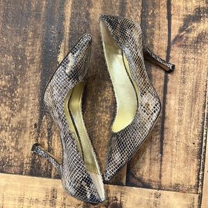EMY MACK Brown Snakeskin Pointy Toe Pumps