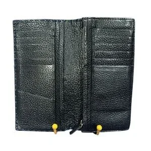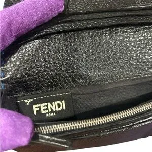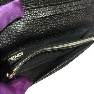 This Fendi wallet showcases a luxurious blue leather with a refined pebbled texture, exuding sophistication and style. Its elongated rectangular shape is perfect for organizing essentials while maintaining a sleek and elegant appearance. The wallet's design ensures it complements any outfit, offering both practicality and timeless elegance.