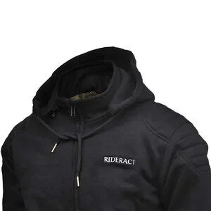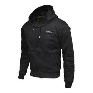 RIDERACT® Mens Motorcycle Black Hoodie Rainforced Riders Hoodie With CE Armors L