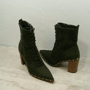 Super Sexy Duffy Green Studded Design Lace Up Heeled Ankle Booties Size 8.5