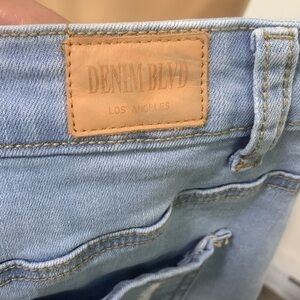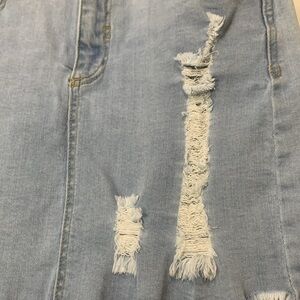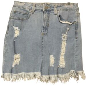Denim BLVD Slim Fit Rugged Jean Skirt Waist 28 Distressed Mini Skirt Blue Wash
