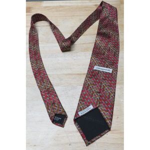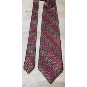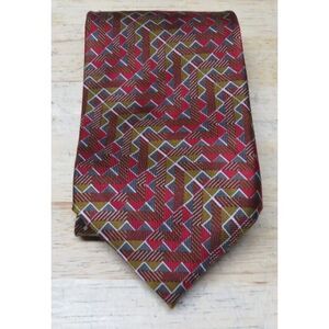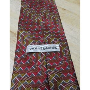 Mens Jhane Barnes Silk Neck Tie Multicolor Geometric Red Brown Made in Japan