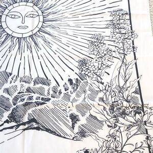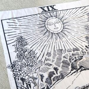 Off white with black graphics bohemian style sun tapestry. Nature & floral graphics. Measurements are shown in photos. The perfect boho addition to any wall or space! In excellent used condition!