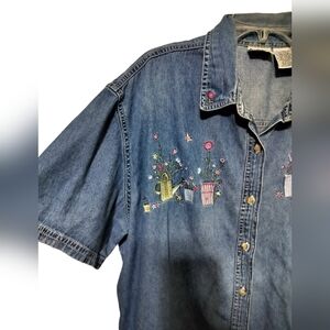 1801)Vtg Bobbie Brooks Short Sleeve Floral Butterfly Button down Denim Top 22/24