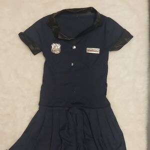 Blue and Black Halloween Cop Costume with Cap and Belt