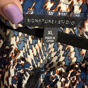 Women's Geometric Print Top w/Tassel tie - Blue Print XLARGE