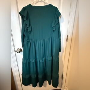 Entro Midi Dress Ruffle Tiered V-Neck Green Sz Large Prairie Western Feminine