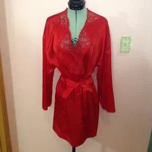 Vintage 1990s '90s Victoria's Secret Red Satin Robe with Belt
