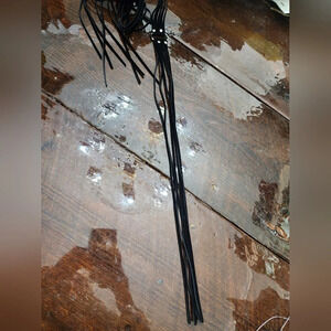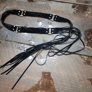 Velour type material multi stranded side tie belt in black color. 65 inches in length. Smoke free home.