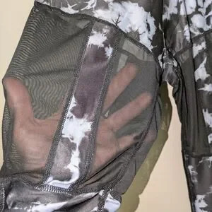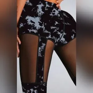 Stylish mesh leggings with a tie-dye pattern. Features a blend of black and white colors.