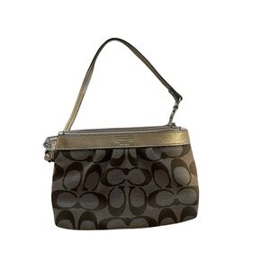 Elevate your style with this elegant Coach wristlet. Featuring a sophisticated brown and gold design, it's perfect for any occasion.