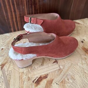 Madewell - Marlo slingback clogs in suede (rust) with shearling