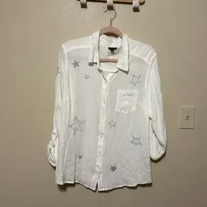 Torrid Taylor White button down shirt with embroidered silver stars Size 2X