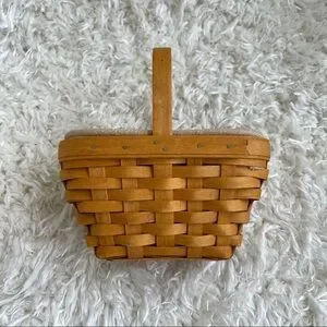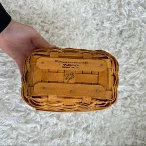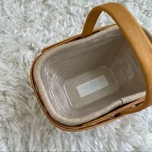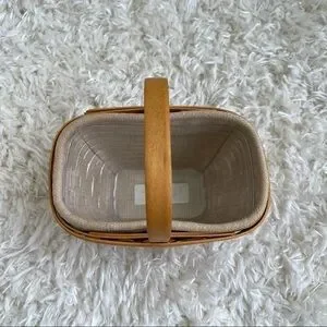 Longaberger Small Comforts Basket / Cornflower Beige Liner And Plastic Insert / handmade in 2002 / Measurements: 4 1/4" Tall 7 1/2 " Width 5 1/2" Depth /