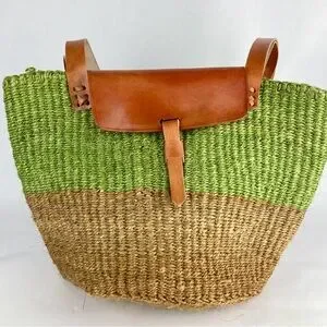 NWOT Sisal Market Kiondo Bag w/ leather top/closure/ and straps