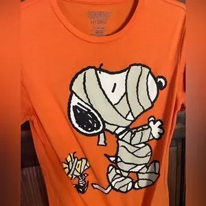 Peanuts Snoopy & Woodstock Mummy T-Shirt Small Orange