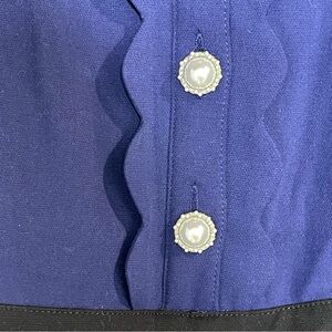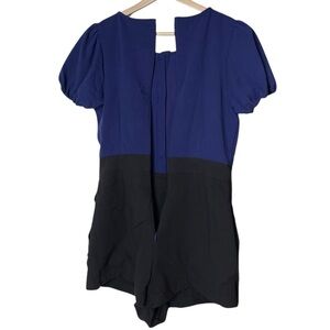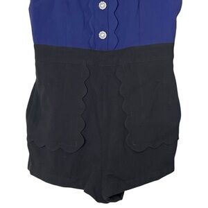 Anthropologie Maeve Puff-Sleeve Colorblock Scallop Pearl Button Romper Size 6
