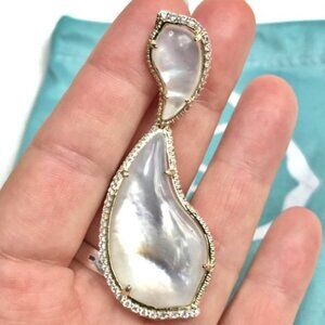 $150 New XL 2.7" L x 1" W Authentic New stunning Kendra Scott Teddi 14K Gold Plated Over Brass cubic zirconia Ivory Mother-of-Pearl CZ Teardrop Earrings. An artistic teardrop design complements these delicate and chic earrings.
