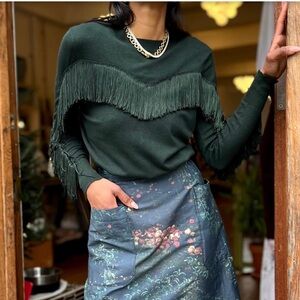 Tags: fringe emerald green dressy casual sweater lightweight travel vacation holiday party spring summer fall winter boho bohemian designer