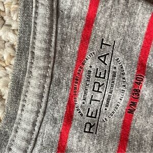 These are all cotton and size medium. Gildan with a logo n the back. Plain Joe Fresh and a gray with red stripe by Retreat.