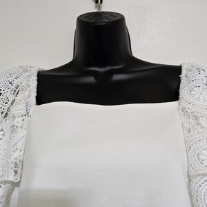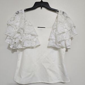 BOSTON PROPER Square Neck Crochet Ruffle Sleeve Stretch Blouse Large Off-White