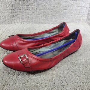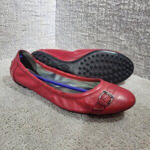 TOD'S Women's Size 37 EU 6 US Red Leather Belt Driving Ballet Scrunch Shoes