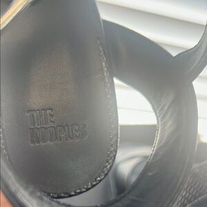 These elegant black sandals from The Kooples showcase a chic open-toe design and a secure ankle strap for added comfort. The medium-height wedge heel provides a stylish lift, while the strappy upper adds a sophisticated touch. Crafted from a leather- material, these sandals are perfect for elevating any outfit.