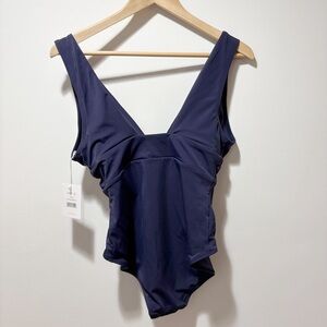New Andie The Mykonos One Piece Swimsuit Navy Blue Size Small NWT Plunge Deep V