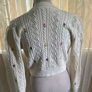 Zara Cream Chunky Knit Cropped Cardigan, S