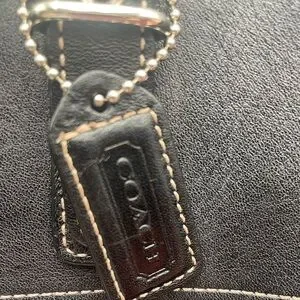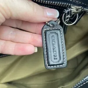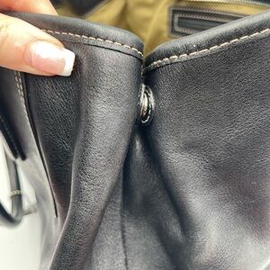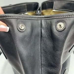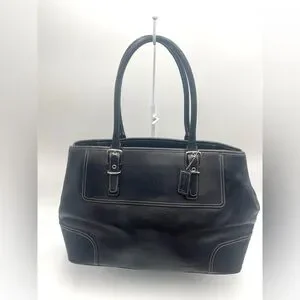 Elegant black leather tote. Features sturdy handles and sleek design. Perfect for everyday use.