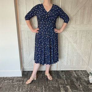 🎉HP🎉 Tommy Hilfiger A-Line Midi Dress Blue with White Blossom Floral - size 16
