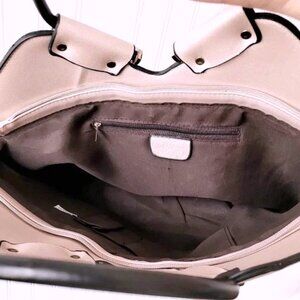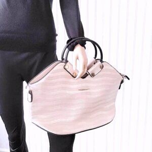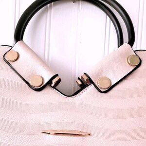 POURQUOI PAS PU Leather XL Soft Pink Metalic Black Metal Handles Shoulder Bag