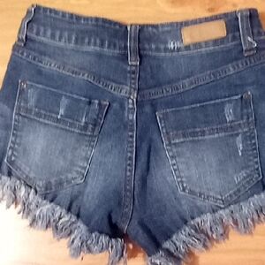 Elan Blue Jean Shorts with Distressed Fringe
