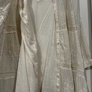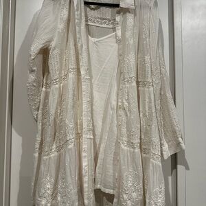 Dress with a cream colored removable slip dress underneath. Measures 25 inches pit to pit and 38 inches in length. There are no words for this dress! Sooo pretty!